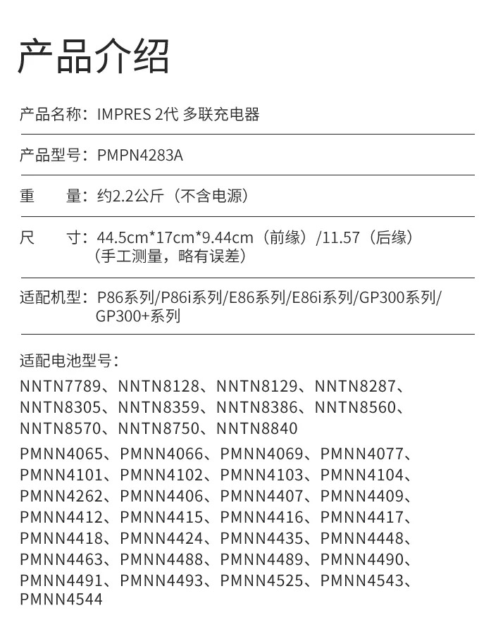 相比1代IMPRES智能六聯(lián)充,2代IMPRES智能六聯(lián)充的體積更小,能大大節(jié)省使用空間,并且還有好搭檔掛墻安裝架( 型號BR000272A01 )可供您選購!