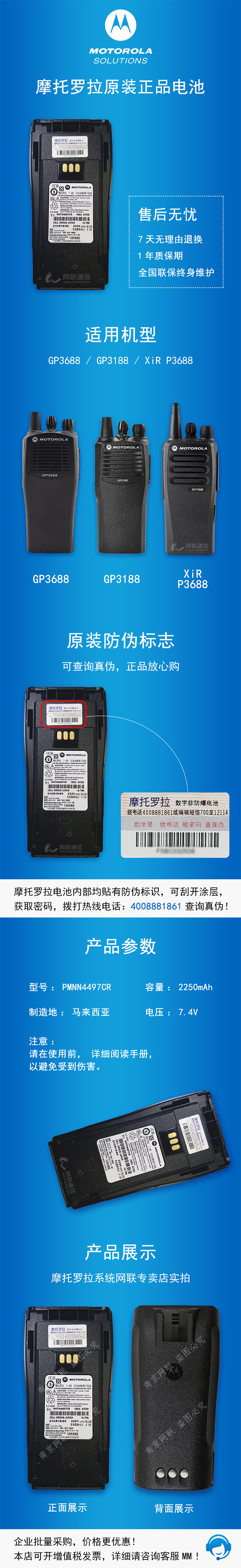 NNTN4497 GP3688/GP3188/P3688鋰電池 2250mAh