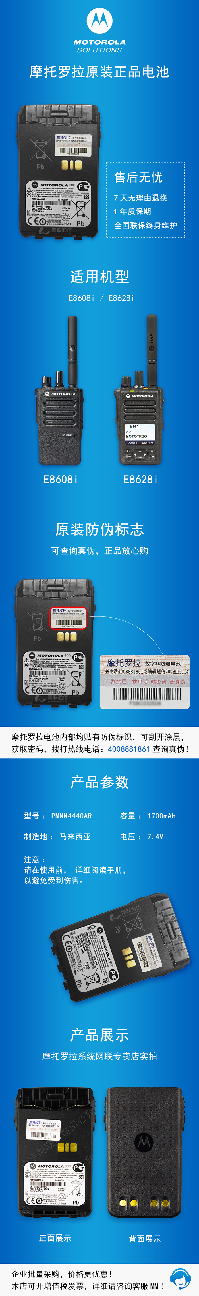 PMNN4406 GP328D+/GP338D+/P86系列 普通鋰電池 1650mAh